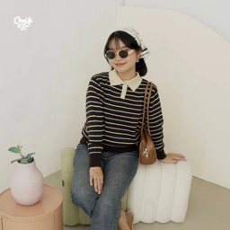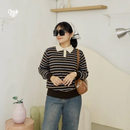 • Sweatshirt Stripes dengan detail polo dan button yg bisa diadjust