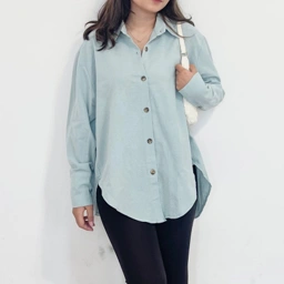 kemeja lengan panjang dgn desain unik & lucuu! assymmetrical gt🥺 bagian belakang lebih panjang drpd depan, dipakenya BAGUSSS BGTTT wajib punya ya! pakai premium button pula, mewah✨