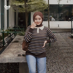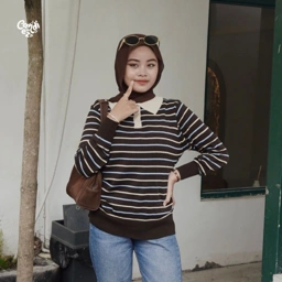 • Sweatshirt Stripes dengan detail polo dan button yg bisa diadjust