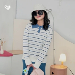 • Sweatshirt Stripes dengan detail polo dan button yg bisa diadjust